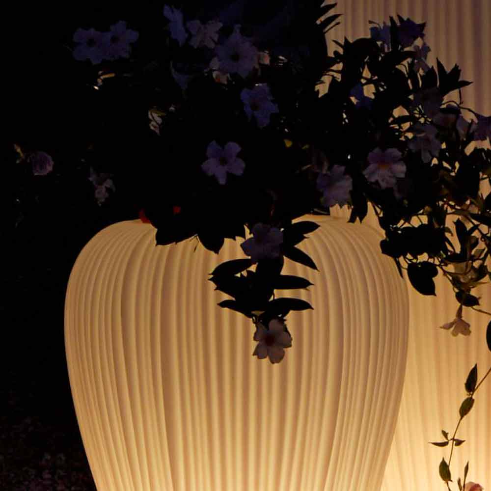 Hud är en familj av vaser med linjär form, dess charm döljs bakom dess struktur som utlöser önskan att röra vid dem. Den exklusiva ytan är inspirerad av observationen av detaljerna som den naturliga miljön lever som avslöjar uppenbarligen osynliga men inte obetydliga detaljer och geometrier: allt har sin egen hud. Skin, är familjen av vaser som integrerar Myyour-samlingen. Jordfästningsplatta medföljer.