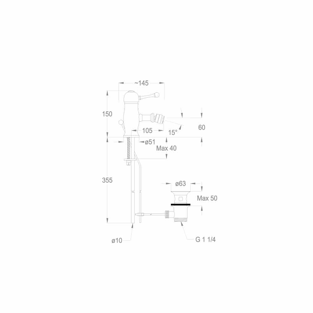 Klassisk designbänksbänkblandare i kromfinish mässing 150 mm hög och 105 mm mittavstånd, med avlopp och dragstång.