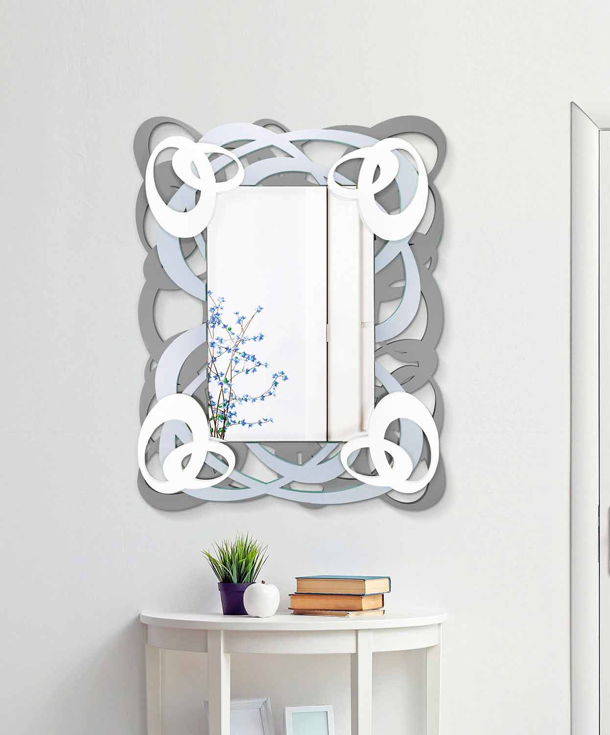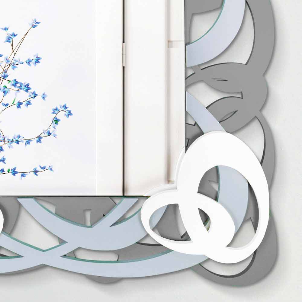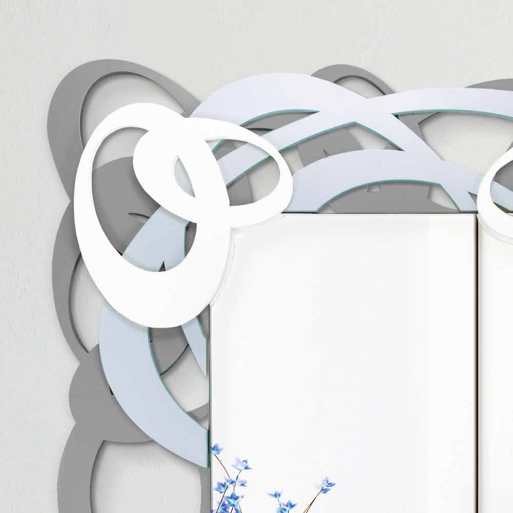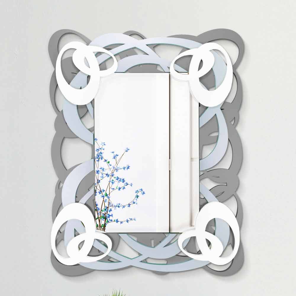 Väggspegel med modern design i laserskuret färgat trä tillverkad i Italien.