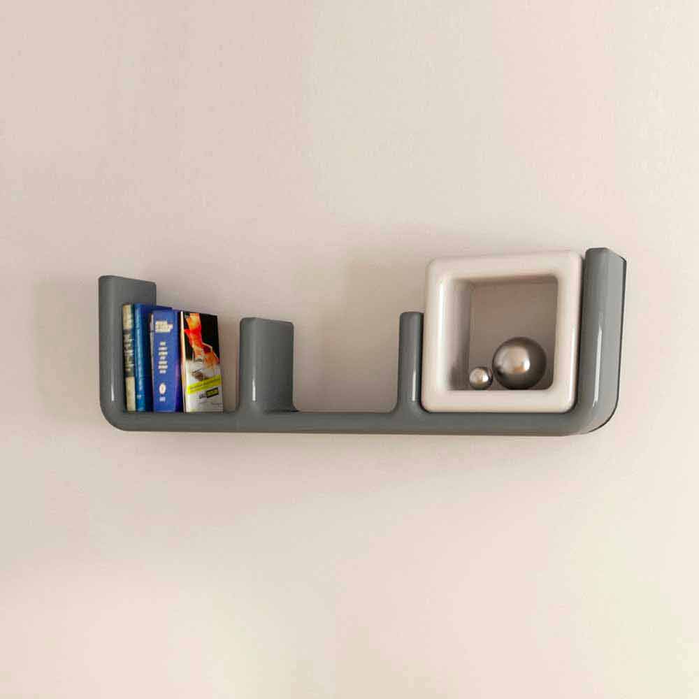 Atlantes bokhylla består av tre användbara fack med tillägg av ett multifunktionstillbehör som vid behov multiplicerar utrymmet för förvaring av böcker och föremål.
