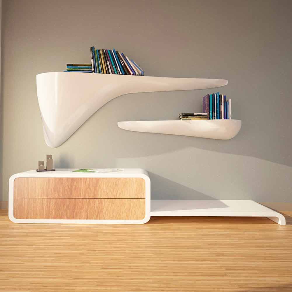 Sizzano är en hylla med en speciell form gjord helt av Solid Surface®; perfekt för att inreda miljöer med originalitet och klass.