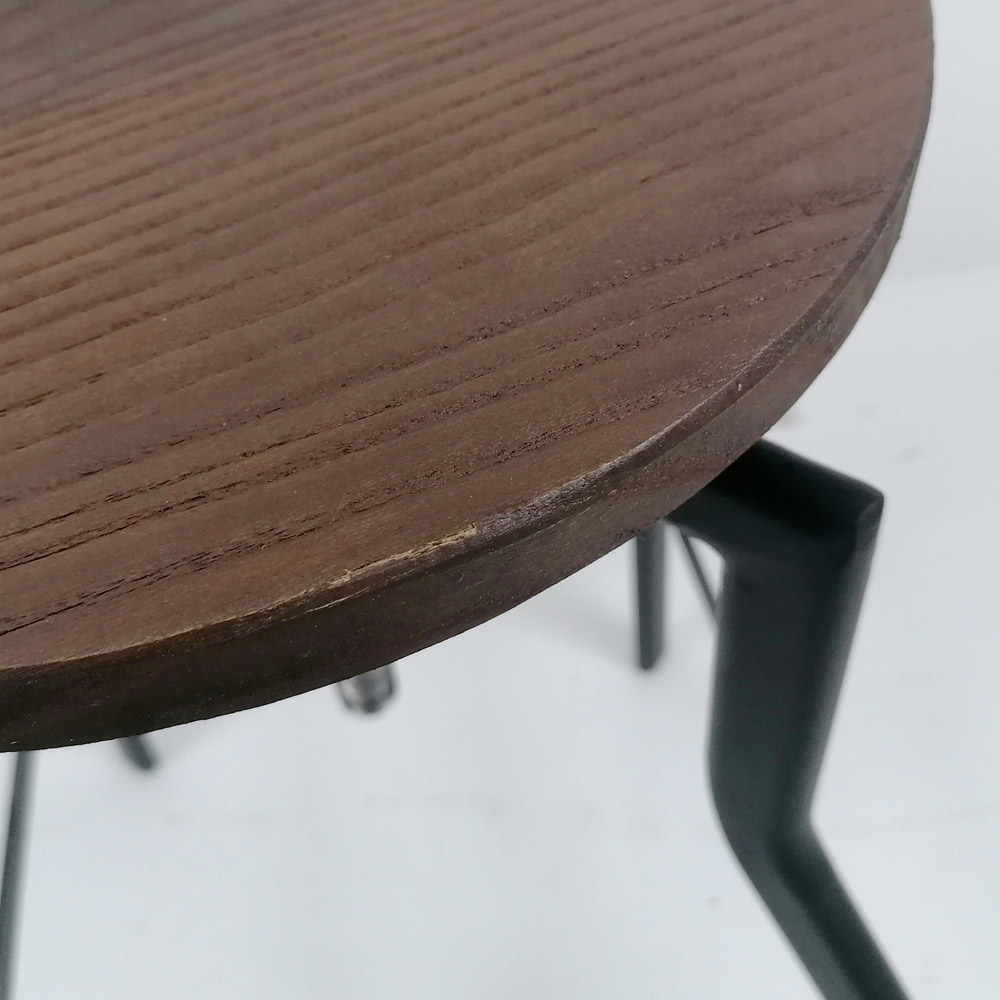 Den har en industriellt svartmålad metallram och en sits i valnötsträ, justerbar i höjd upp till en maximal höjd på 76 cm. Säkerställ maximal stil och komfort med denna pall.