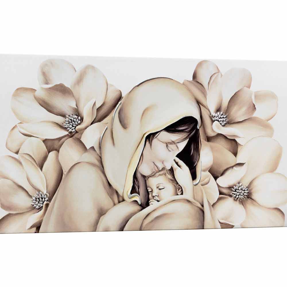Originalmålning gjord av italienska hantverkare på duk med giftfria och miljövänliga material, dekorerad för hand med reliefdetaljer i silverblad på harts.