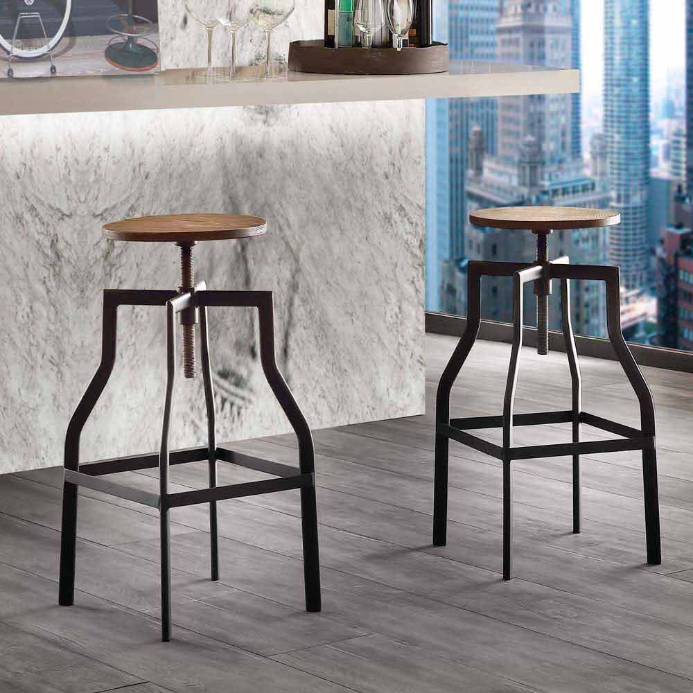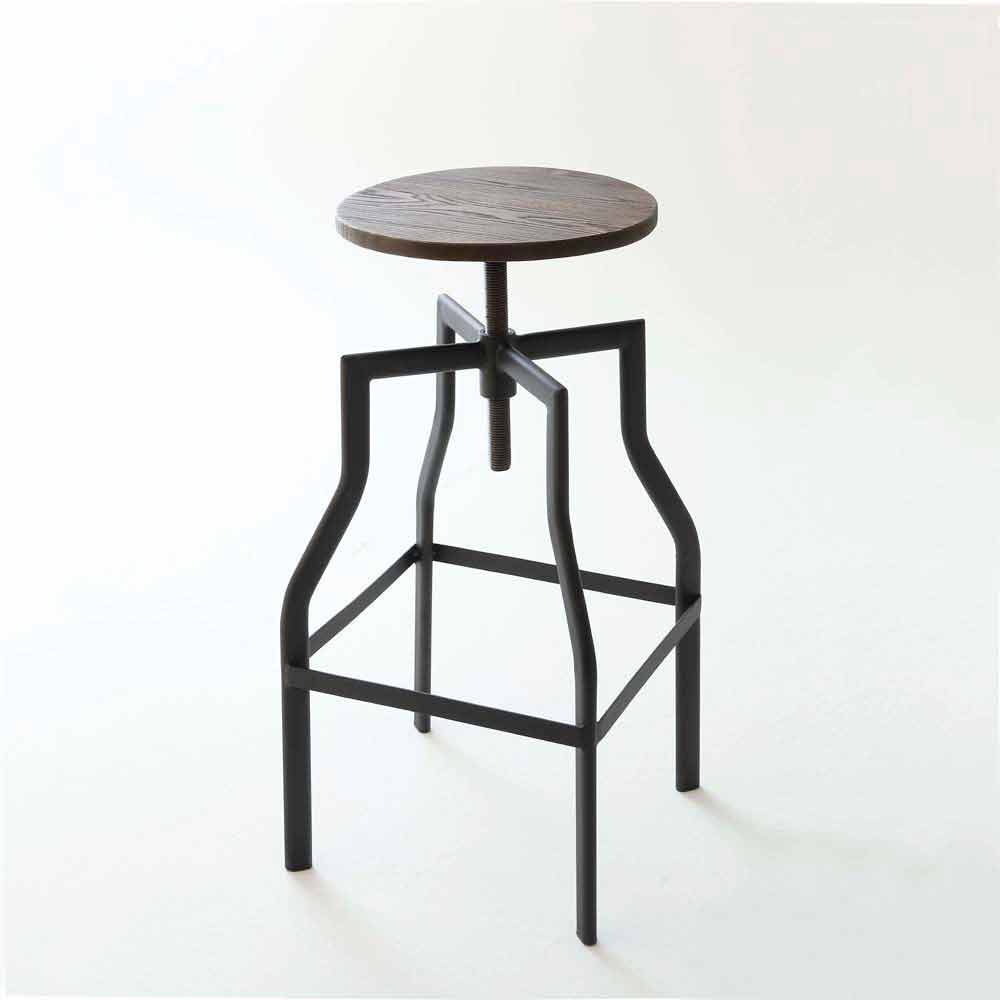 Det består av en industriell svartmålad metallkonstruktion och en industriell valnötträstol justerbar i höjd upp till maximalt H76 cm. Se till maximal stil och komfort med denna pall.