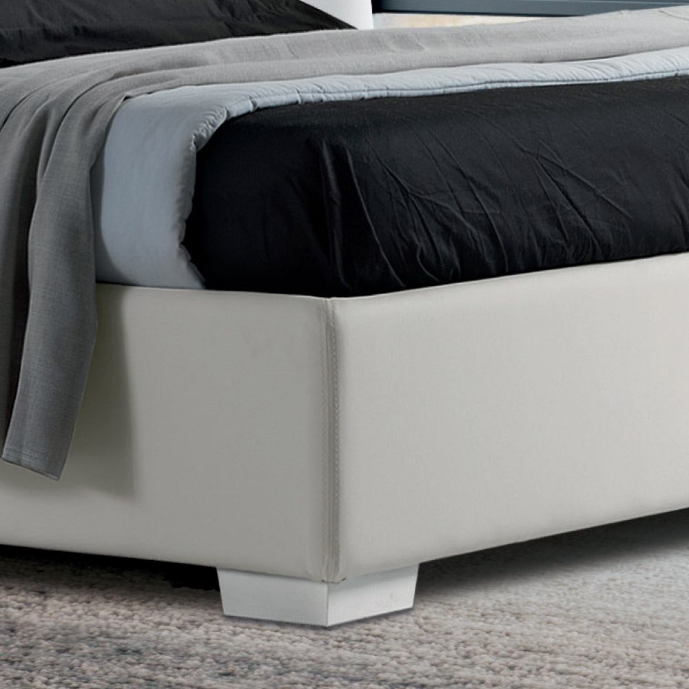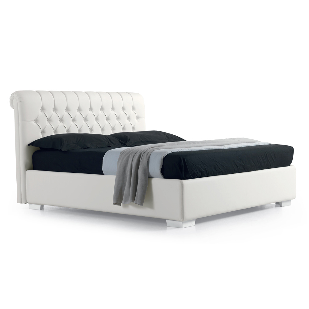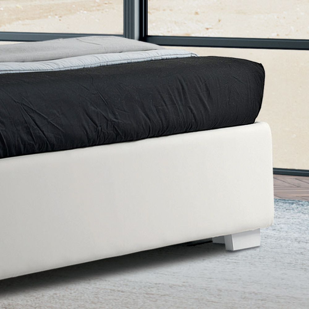 Klädd dubbelsäng klädd i eko-läder, med förvaringslåda, tillverkad i Italien.