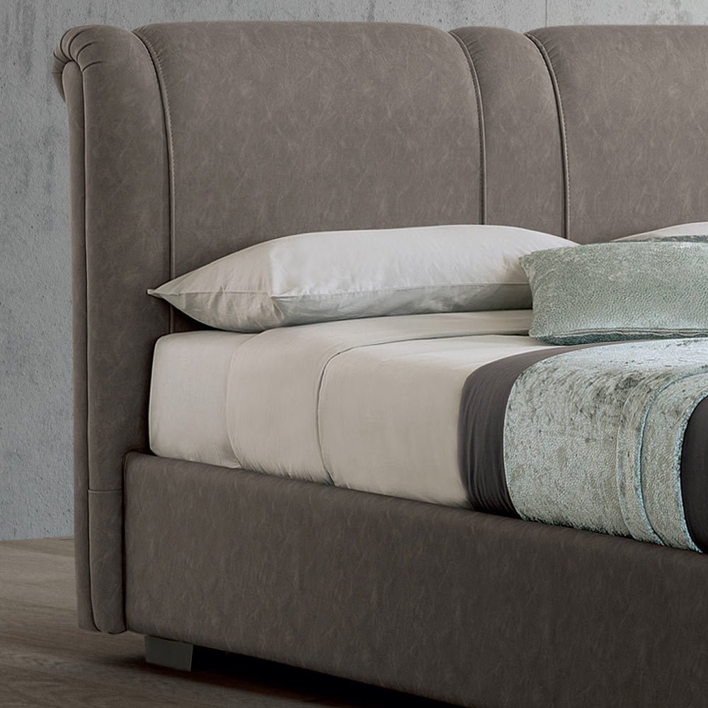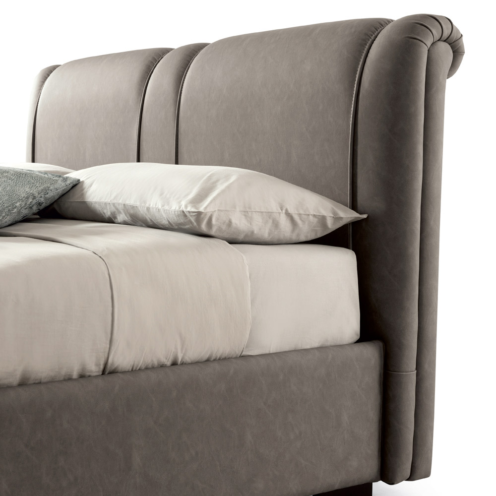 En speciell egenskap hos denna säng är klädseln, gjord av Taurus brandsäkert läder, tillgänglig i olika färger .
