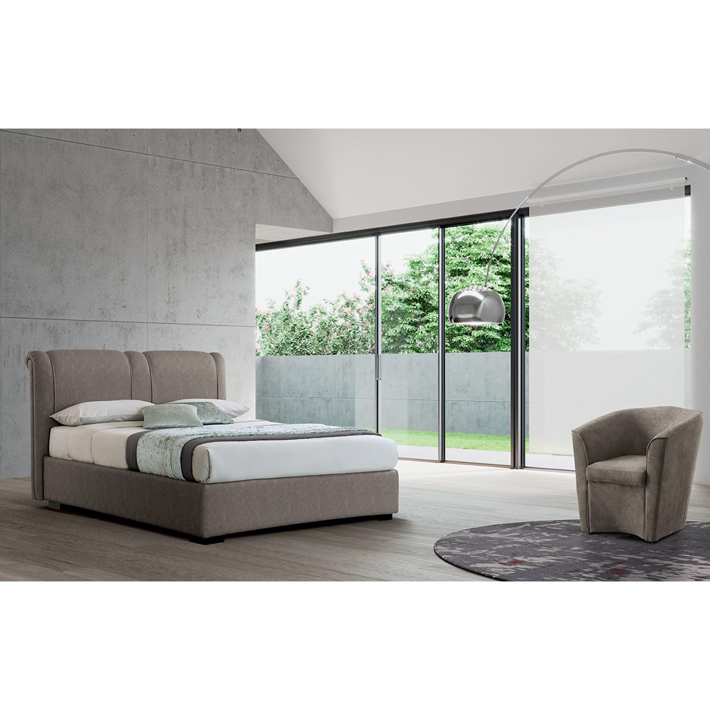 Denna säng är utrustad med en stor behållare med en lyftbotten , vilket är den idealiska lösningen för att optimera utrymmet och hålla sovrummet alltid snyggt. Faktum är att filtar, kläder, kuddar etc. kan förvaras i lådan. Behållaren är försedd med en ortopedisk lyftbas, gjord av rörformigt järn målat med epoxipulver vid 200° och har två separata och lika långt vertikala armeringsjärn. Metallröret mäter 40x28 mm. Lamellerna är hela och tillverkade av 68x8 mm björkplywood.