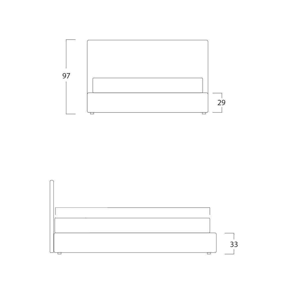 Den är helt avtagbar. Strukturen är av granträ med en naturlig invändig finish h.29, täckt med polyuretanskum utan klorfluorkolväten enligt UNI-standarder och fodrad med ljusstabil velfodera. Sängen levereras med lamellbotten med metallstruktur, böjd ram med 50x37 mm profil målad med epoxipulver. Normal ortopedisk lamellbotten, 15 lameller i böjd bokplywood 68x8 mm per bädd.
