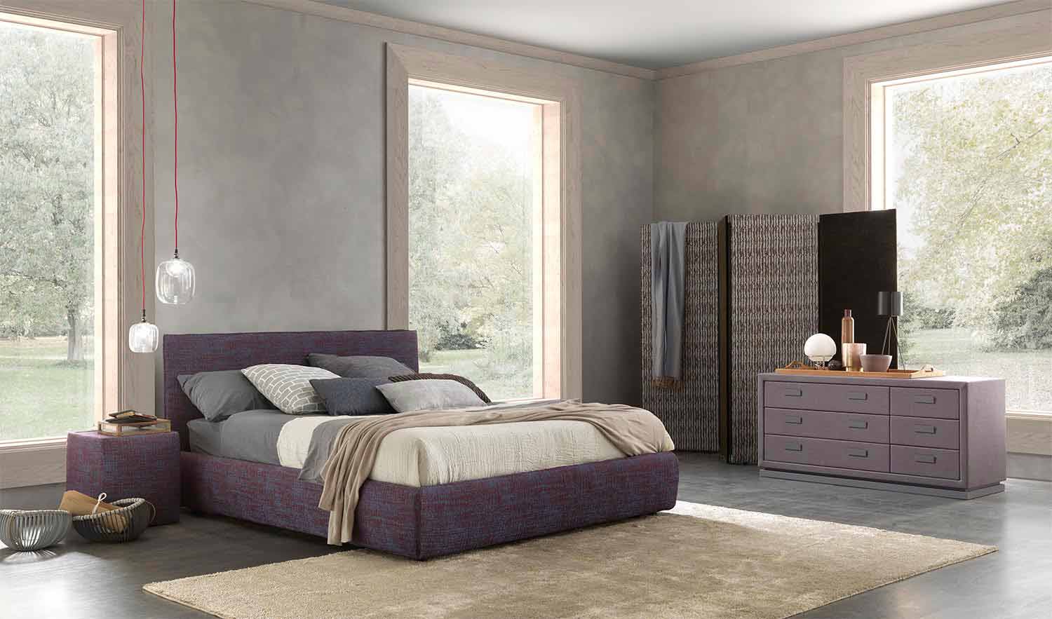 Modern dubbelsäng klädd i Gaya Nytt tyg från Bolzan