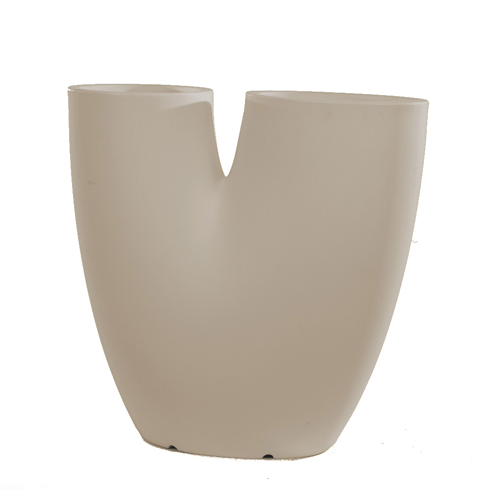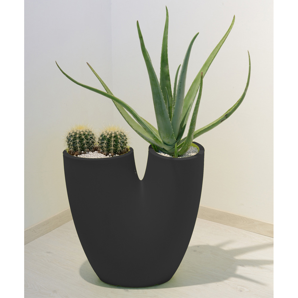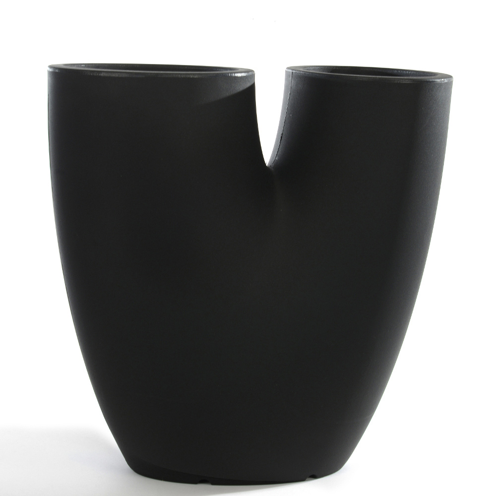 modern vas med en slank och fängslande design, designad för att placera två typer av olika växter i en enda vas tack vare de två befintliga hålen. Den kan användas både som vas och som vashållare. Finns i olika färger och passar bäst för både utomhus- och inomhusmiljöer.