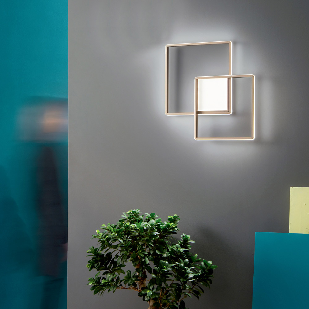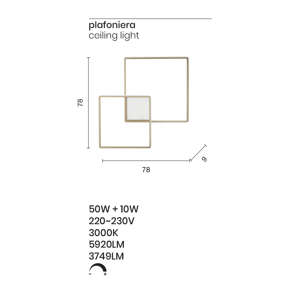 ursprungliga och fyrkantiga linjer , utformad och designad för att lysa upp och inreda hemutrymmen som entréer, korridorer, sovrum, vardagsrum eller kök på ett exklusivt och elegant sätt. Den raffinerade gyllene finishen understryker den