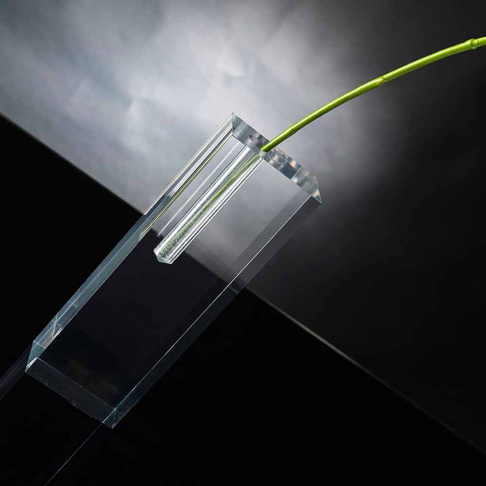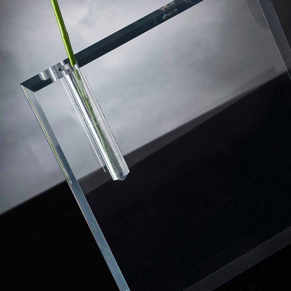 Dekorativ vas för inredning i transparent plexiglas Tillverkad i Italien.