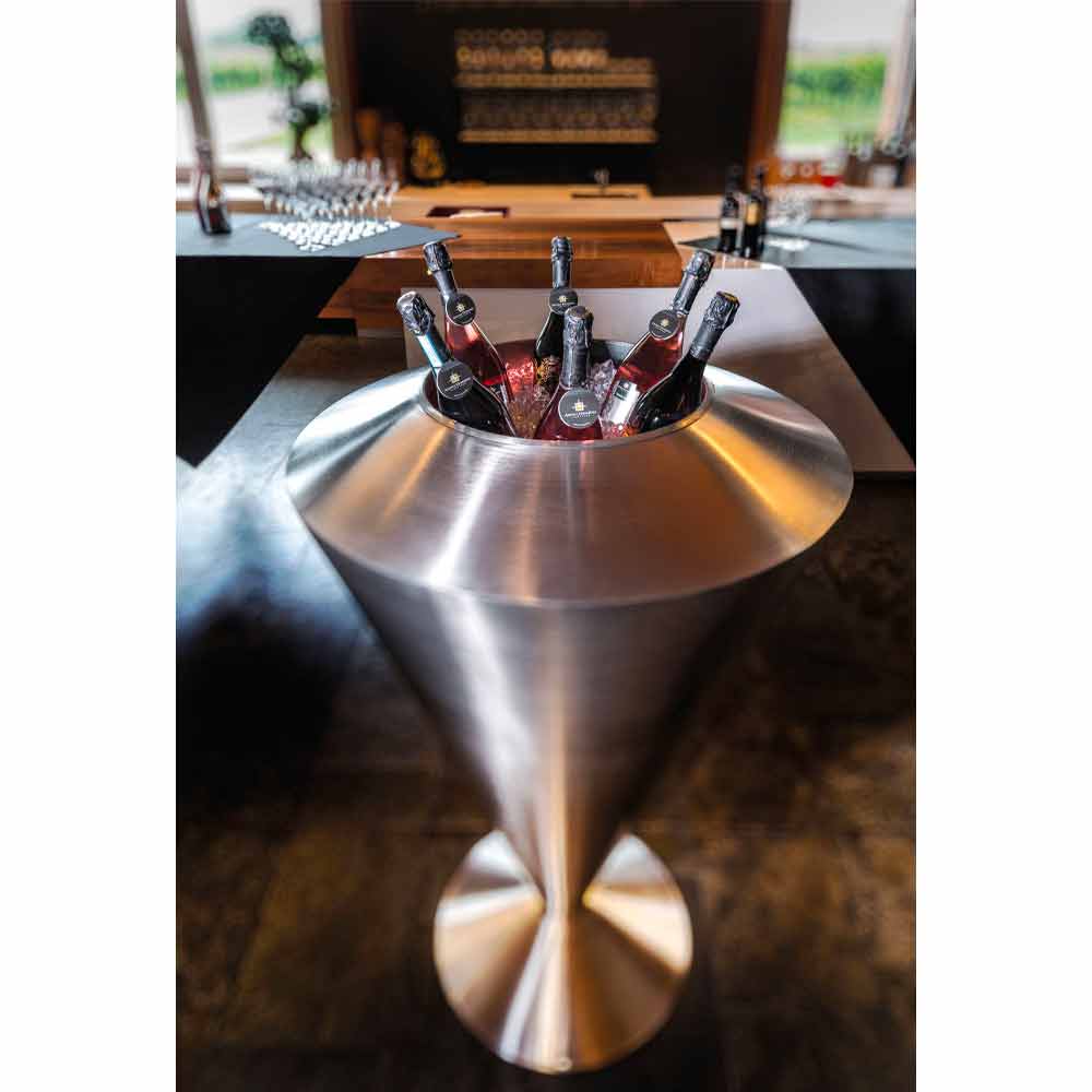 Golv Frappeuse tillverkad helt i Italien i rostfritt stål med isflaskhållare. Perfekt för inredning av barer, restauranger men även inhemska områden som är avsedda för middagar. Denna möbel är både modern och funktionell, och erbjuder en perfekt lösning för att hålla temperaturen på vinerna så att de blir kalla medan de berikar de omgivande möblerna. Användningen av stål maximerar sin effektivitet samtidigt som den gör det möjligt att anpassa sig till alla stilistiska situationer på ett harmoniskt och oklanderligt sätt för ett originellt och diskret resultat samtidigt. Att öka sitt värde är 100% tillverkad i Italien bearbetning tillsammans med användning av kvalitetsråvaror som höjer dess värde och säkerställer en solid, beständig produkt med utmärkt hållbarhet .