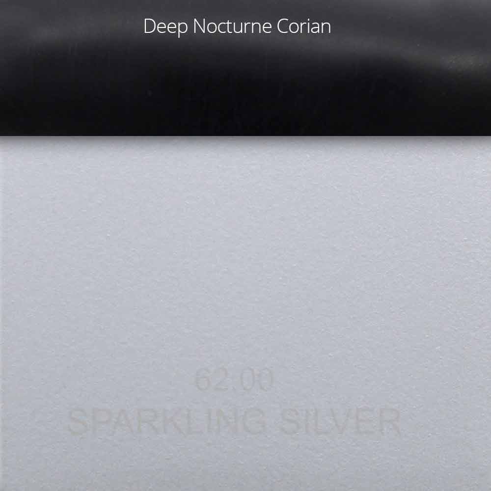 - Mousserande silver + Deep Nocturne Corian®: matt silvermetallisk yta med element i svart DuPont ™ Corian®;