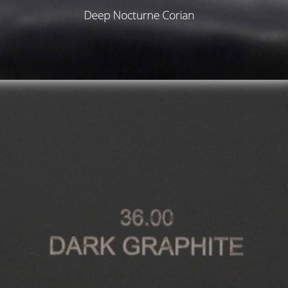 - Dark Graphite + Deep Nocturne Corian®: matt kall mörkgrå yta med element i svart DuPont ™ Corian®;