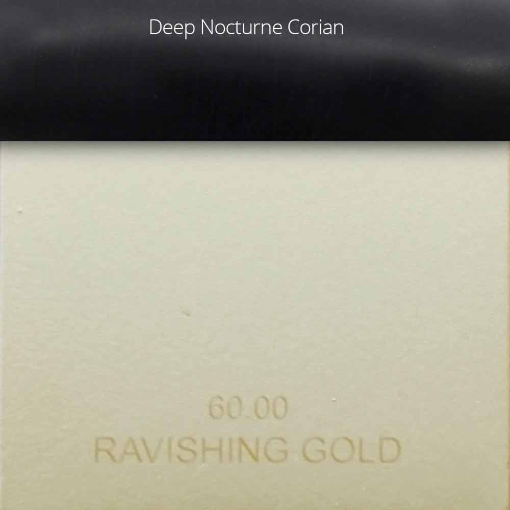 - Ravishing Gold + Deep Nocturne Corian®: matt guldmetallfinish med element i svart DuPont ™ Corian®;