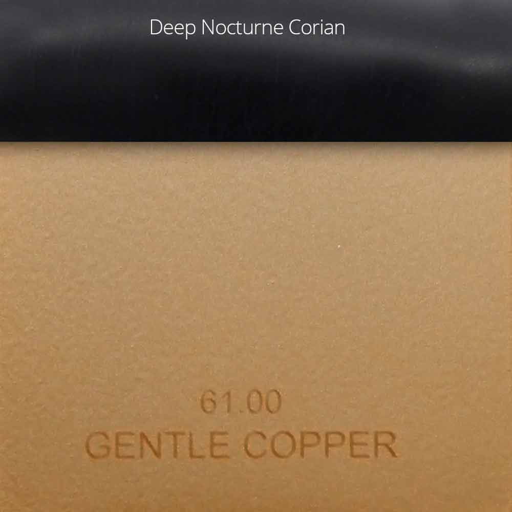 - Gentle Copper + Deep Nocturne Corian®: matt lätt kopparmetallfinish med element i svart DuPont ™ Corian®;