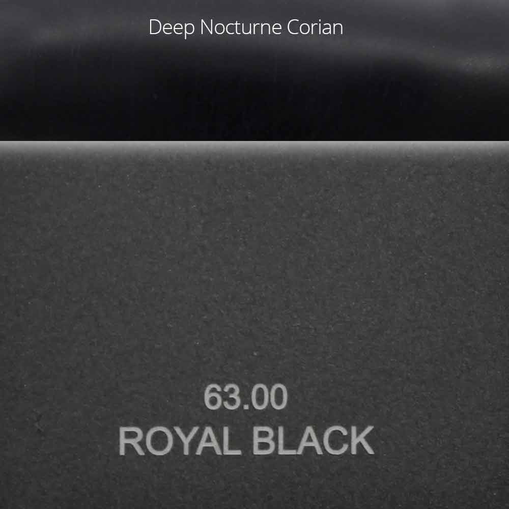 - Royal Black + Deep Nocturne Corian®: matt metallisk finish med element i svart DuPont ™ Corian®;