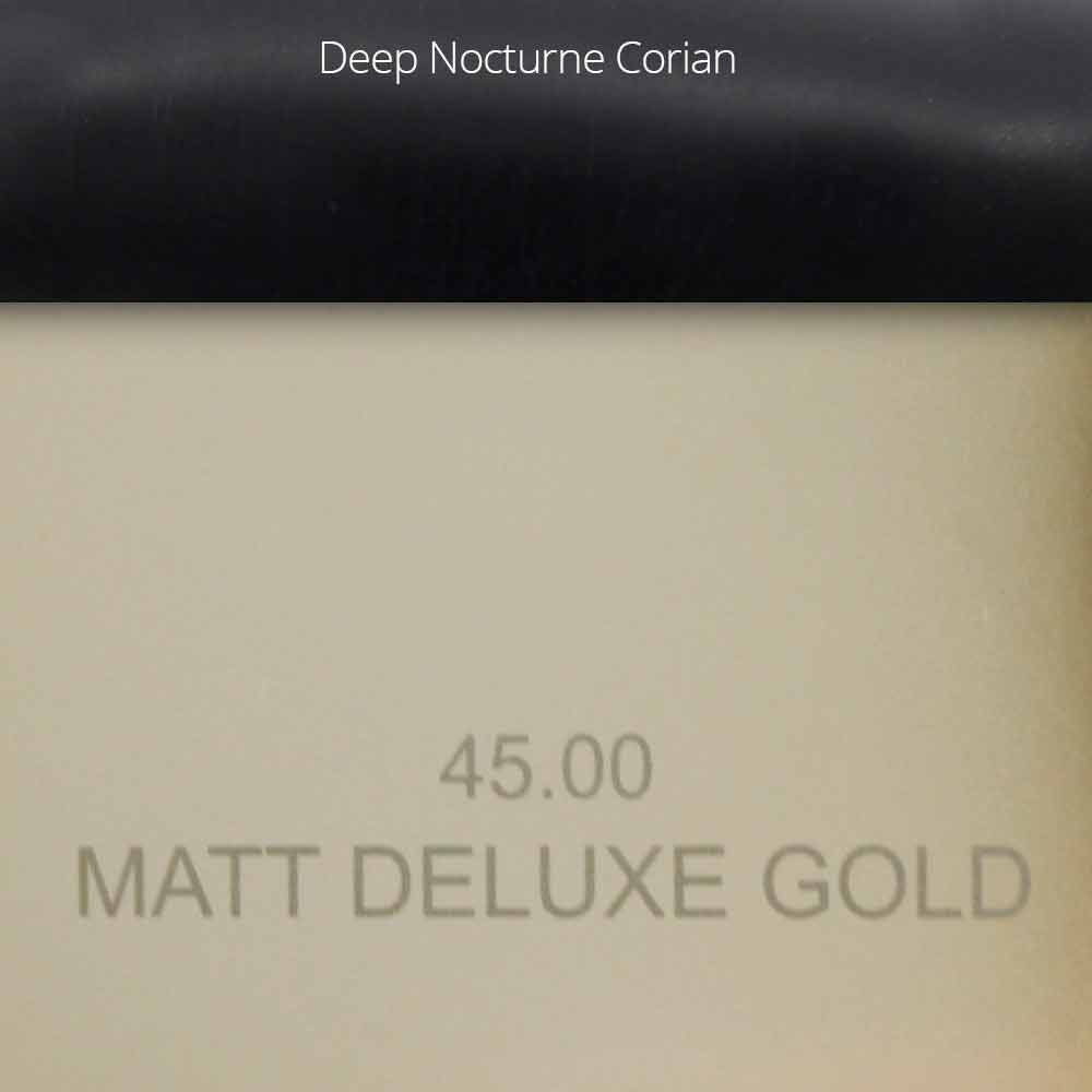 - Matt Majestic Gold + Deep Nocturne Corian®: matt guld 13 finish med element i svart DuPont ™ Corian®;