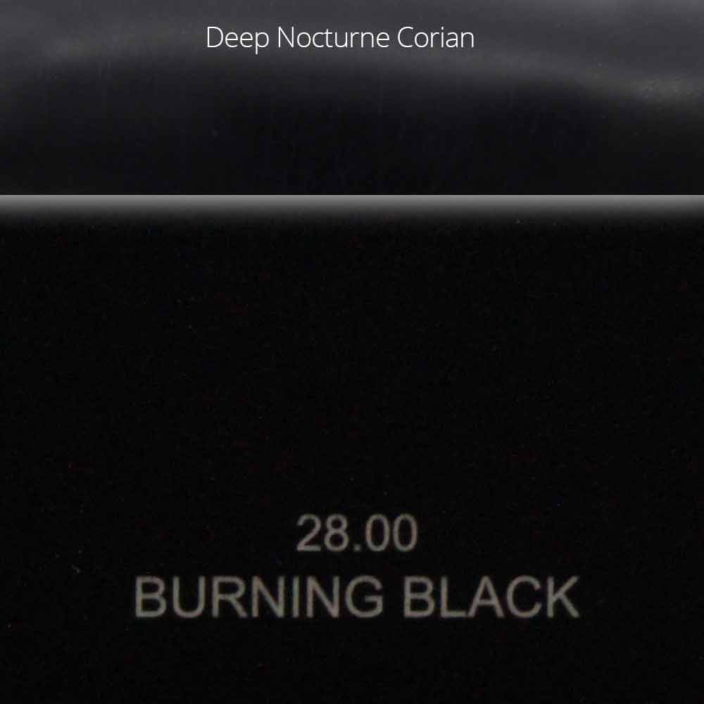 - Burning Black + Deep Nocturne Corian®: matt svart yta med svarta DuPont ™ Corian®-element;