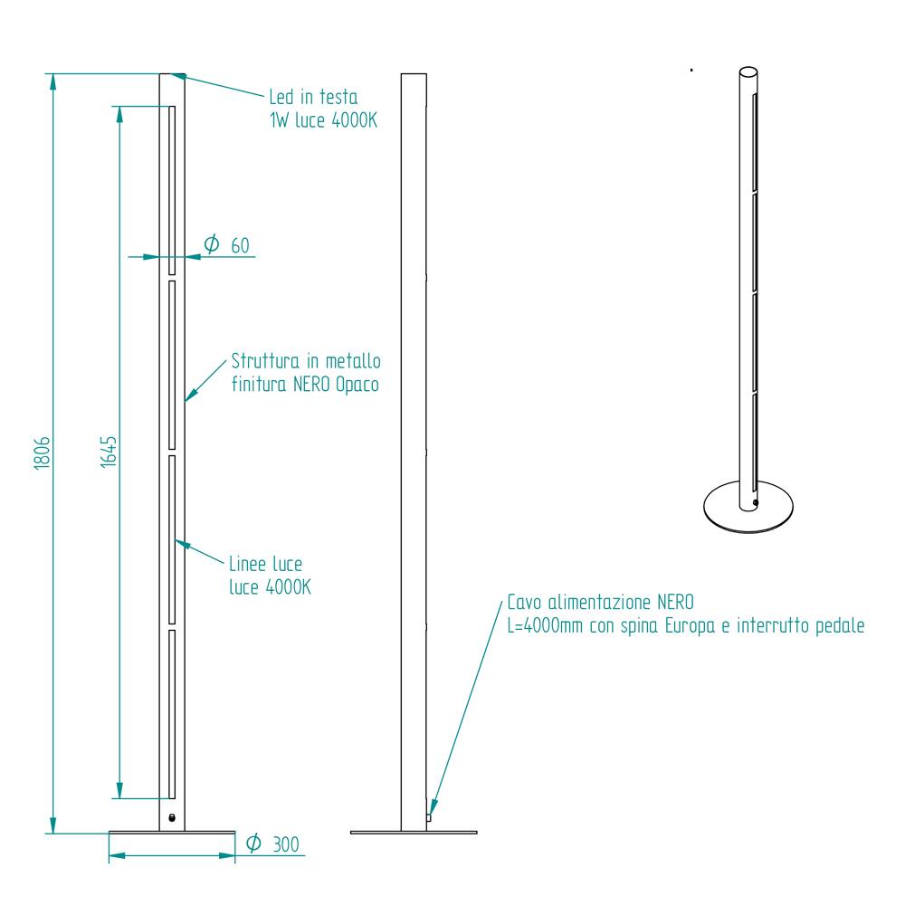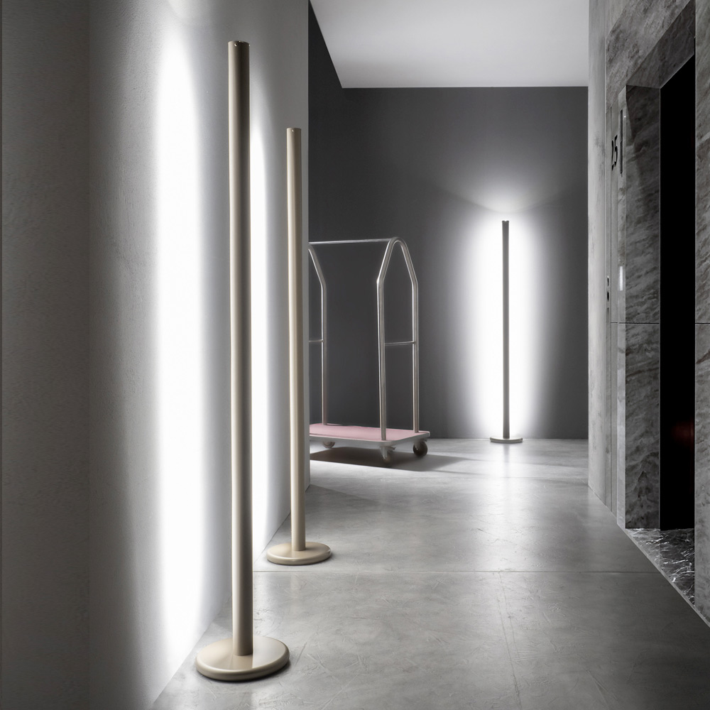 Golvlampa i metall med dubbel vertikal belysning, modern design Tillverkad i Italien.