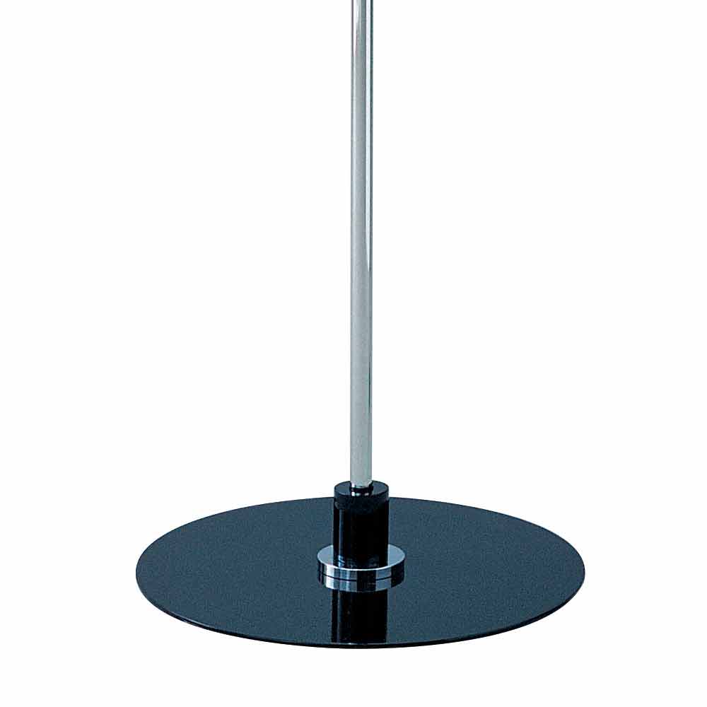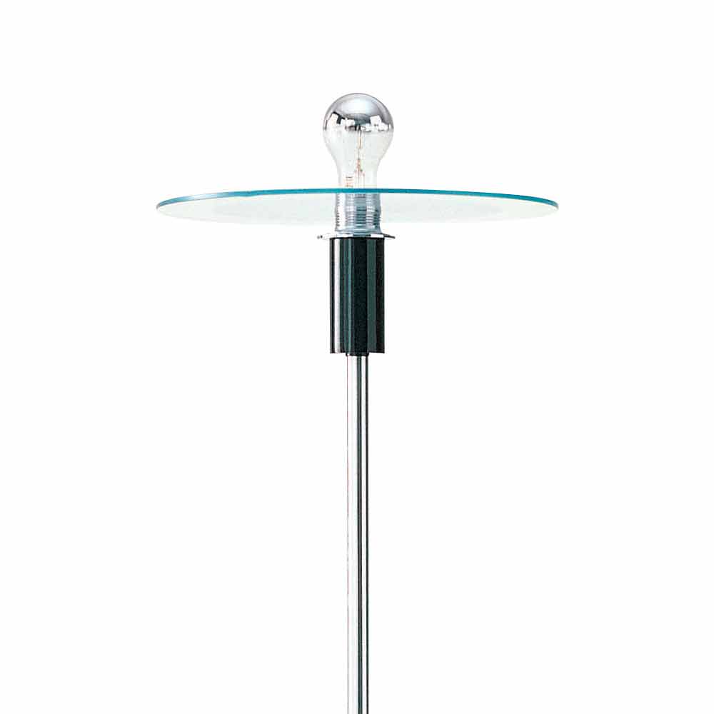 Golvlampa med förkromad struktur , glasplatta och svartmålad bas och infästningar. En möbelidé som kommer från en idé och en 100% Made in Italy-produktion som är utformad för att erbjuda funktionell belysning och avantgarde-design . Denna typ av produkt gör det möjligt att förstärka och göra varje rum i huset där det är infogat välkomnande och tack vare användningen av enkla linjer som ger liv åt nya och särskilt mångsidiga former, så att lampan lätt kan anpassas till alla moderna stilistisk situation, gifta sig på ett oklanderligt sätt. med resten av möblerna och komplettera dem homogent. Resultatet är en lampa som kan omfatta alla de grundläggande aspekter som eftersträvas genom att representera en praktisk och funktionell ljuskälla utan att försumma den estetiska aspekten som är grundläggande för en harmonisk och välkomnande atmosfär .