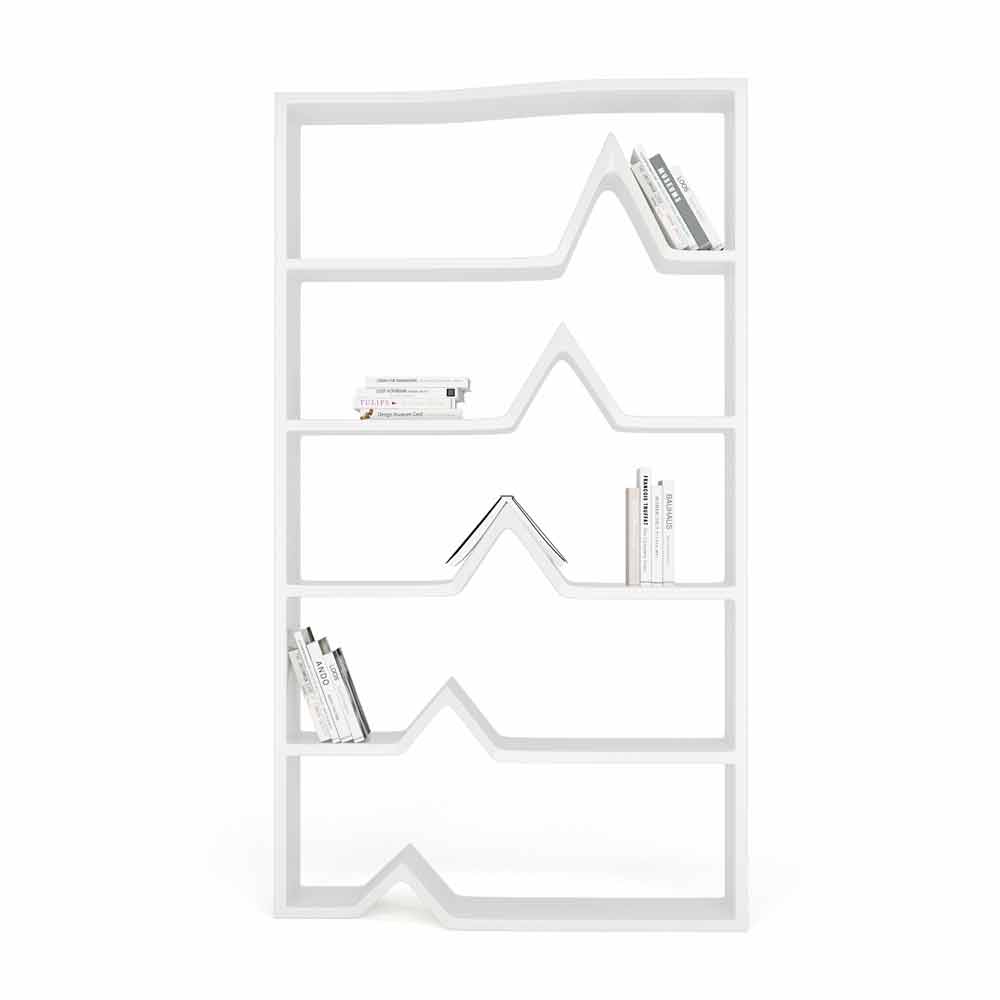 Biblioteket är inspirerat av Darwins teori om mänsklig evolution. Vi har märkt att vår hållning när vi använder en bokhylla påminner om figuren i varje steg av dess teori. För att återspegla denna idé är varje rad i bokhyllan utformad för att representera de olika stadierna i evolutionsprocessen. Struktur tillverkad av Solid Surface, tillgänglig i två färgvarianter: Vit (RAL9003) eller Svart (RAL9005)