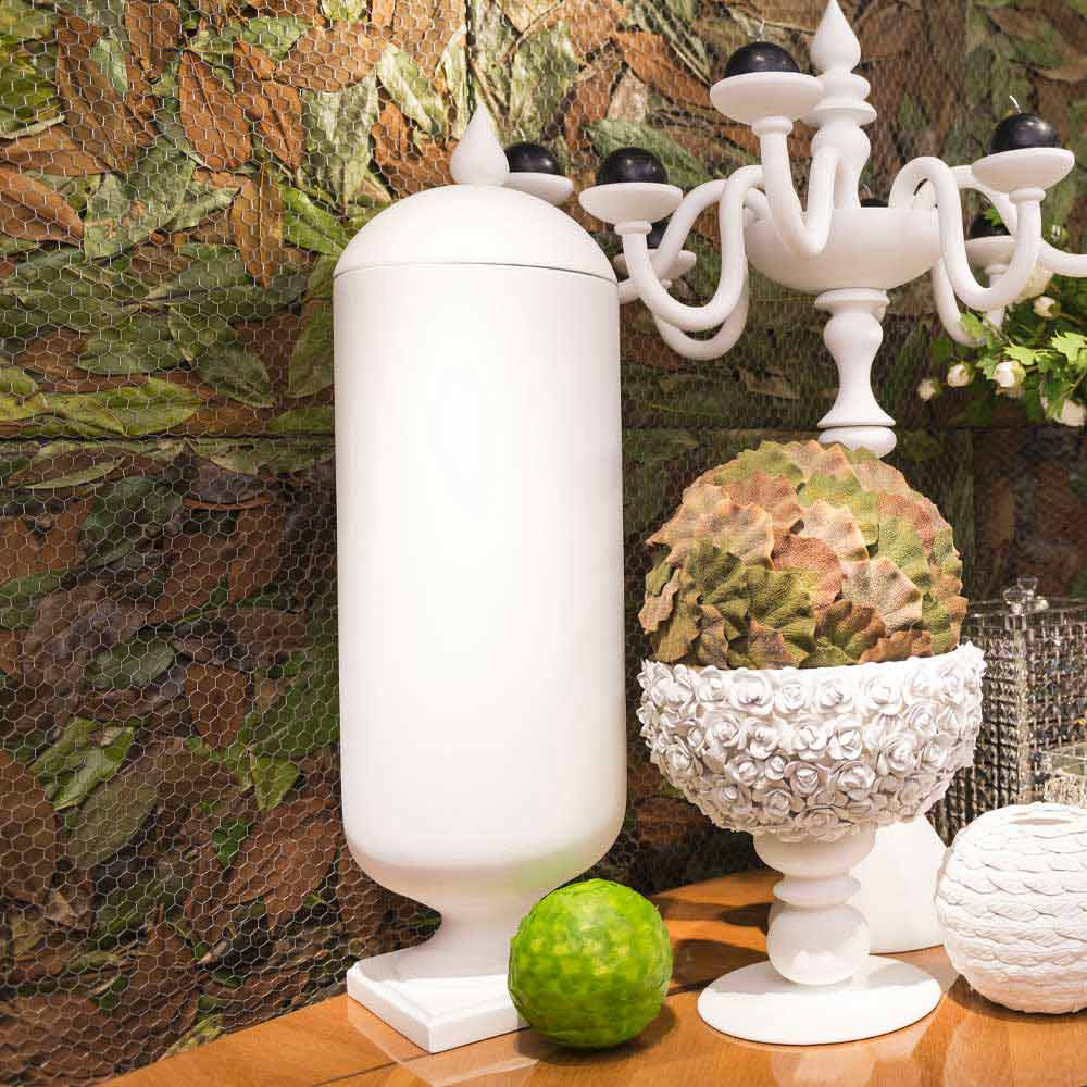 Modern vas för inredning i ogenomskinlig vit keramik handgjord genom en 100% tillverkad i Italien produktion . En design präglad av olika och enkla geometriska former som ger liv till ett unikt komplement som präglas av en raffinerad minimalism som är idealisk för dem som älskar att inreda på ett väsentligt sätt men med personlighet och karaktär . Hantverket understryker dess värde och präglas av precision, passion och kärlek för tradition. Resultatet är en idé om exklusiva möbler som är idealiska för de mest varierade miljöerna, från heminredning till hotell, restauranger, kontraktsområden, spa men också som en miljö för evenemang och bröllop.