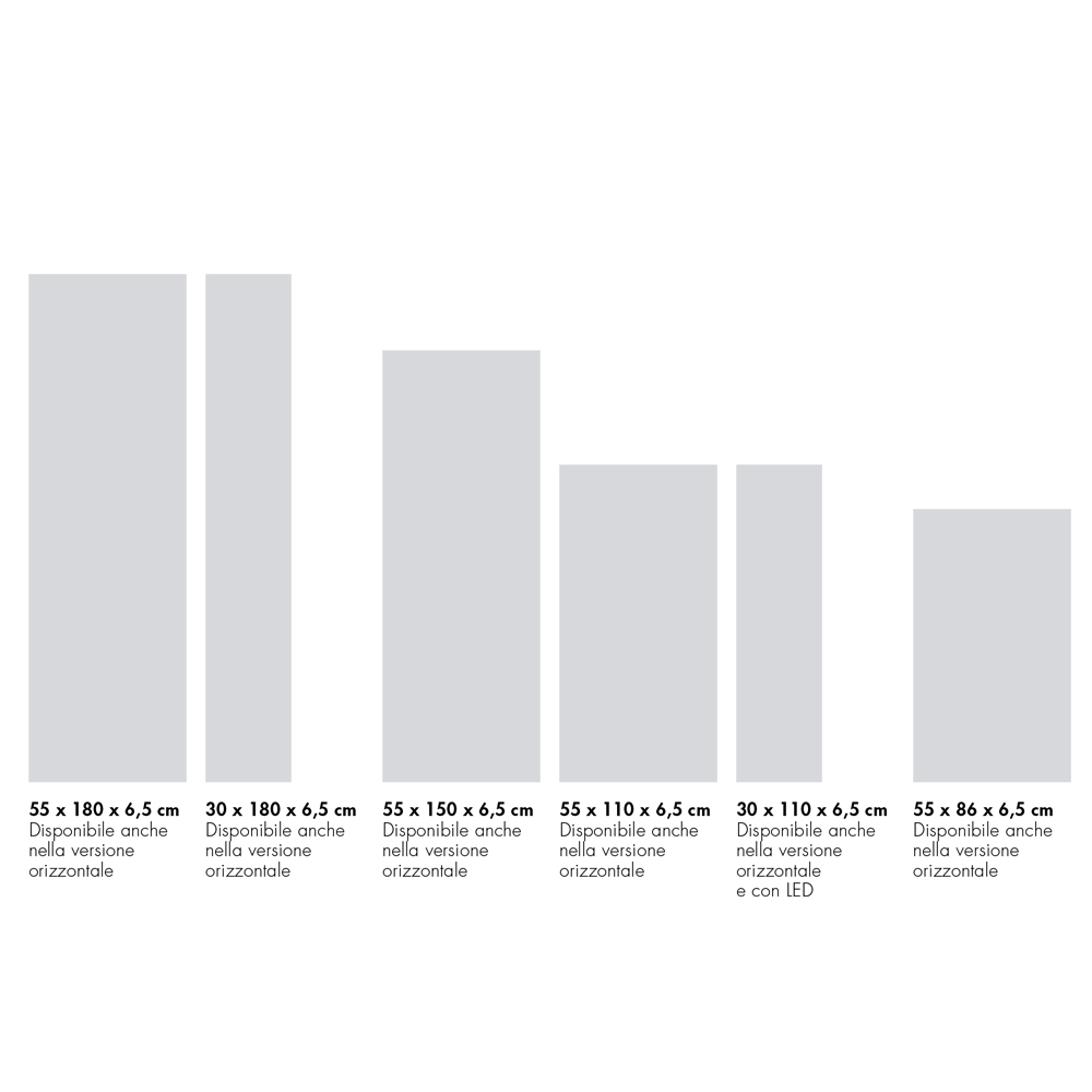 design och funktionalitet, garanterar starkt motstånd, enkel montering och inredningsflexibilitet då den finns i vertikala och horisontella versioner, med 3 typer av teknik mellan elektrisk, hydronisk och hybrid och ett