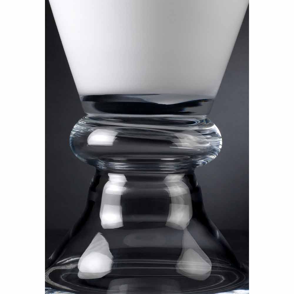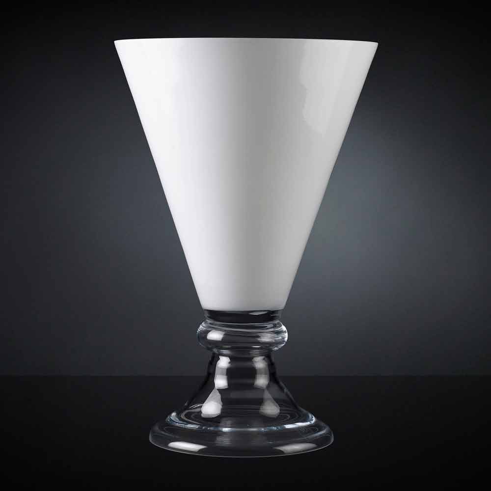 Modern vas för inredning i glas och genomskinlig vitbearbetning med en 100% Made in Italy. En idealisk design för de mest varierade miljöerna, från heminredning till hotell, restauranger, kontraktsområden, spa men också som en miljö för evenemang och bröllop. Dess klassiska och sofistikerade estetik representerar dess starka punkt som gör att den kan fullborda alla utrymmen med klass tack vare glasets inneboende elegans, ett kvalitetsmaterial med högt värde .