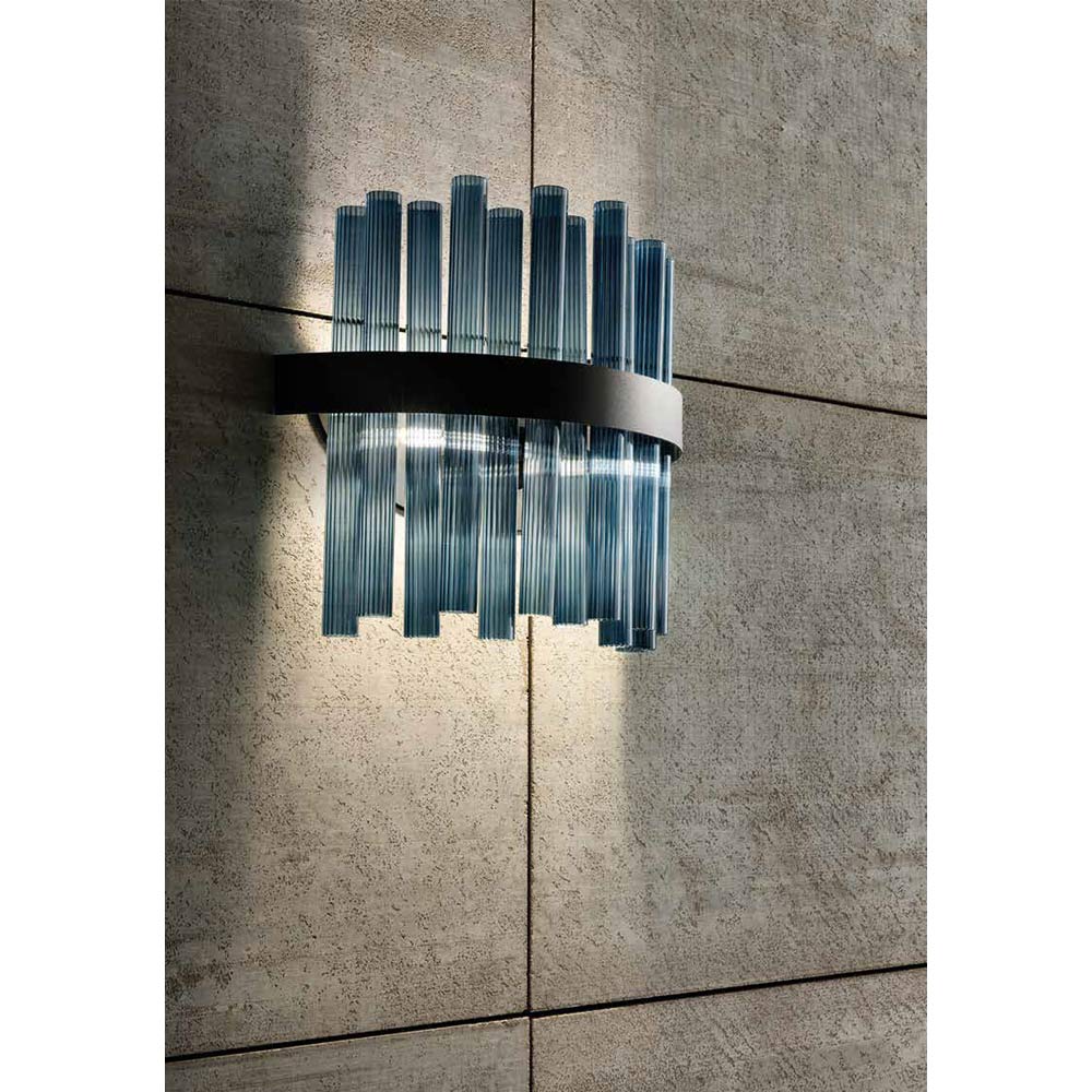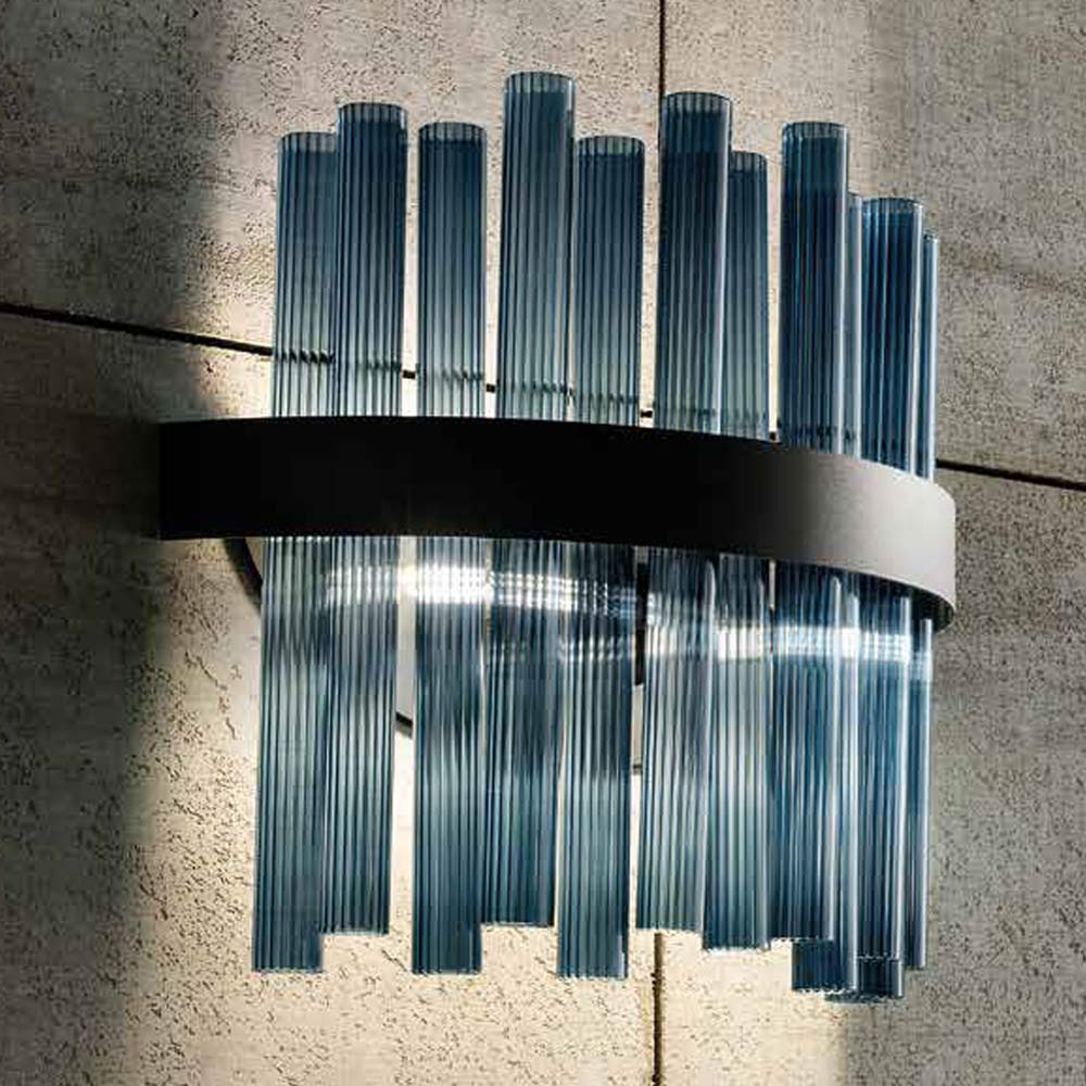 Lyxig handgjord vägglampa i blåst randigt glas tillverkad i Italien.