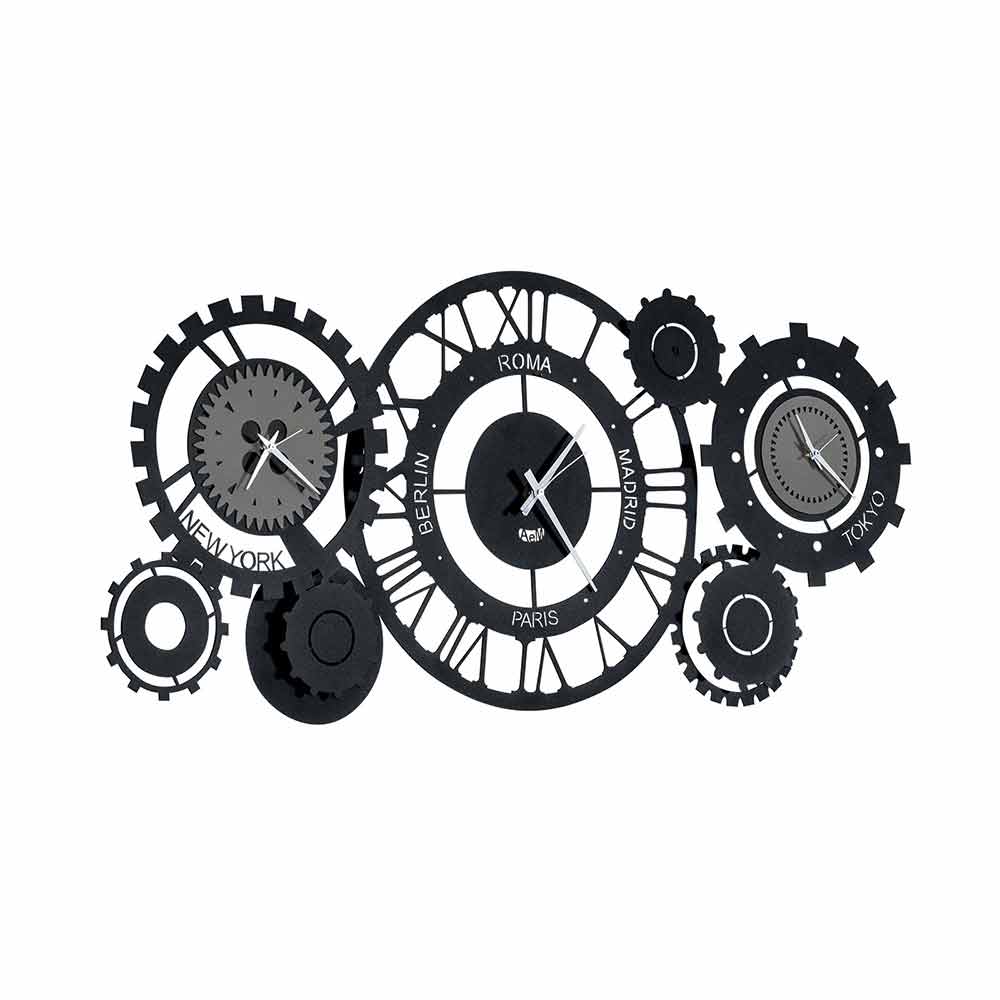 Väggklocka för modern design som är handgjord i Italien i järn med tre spindlar.