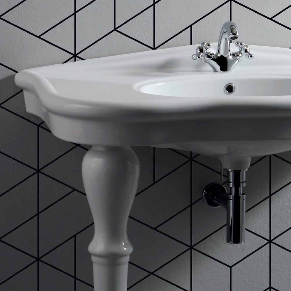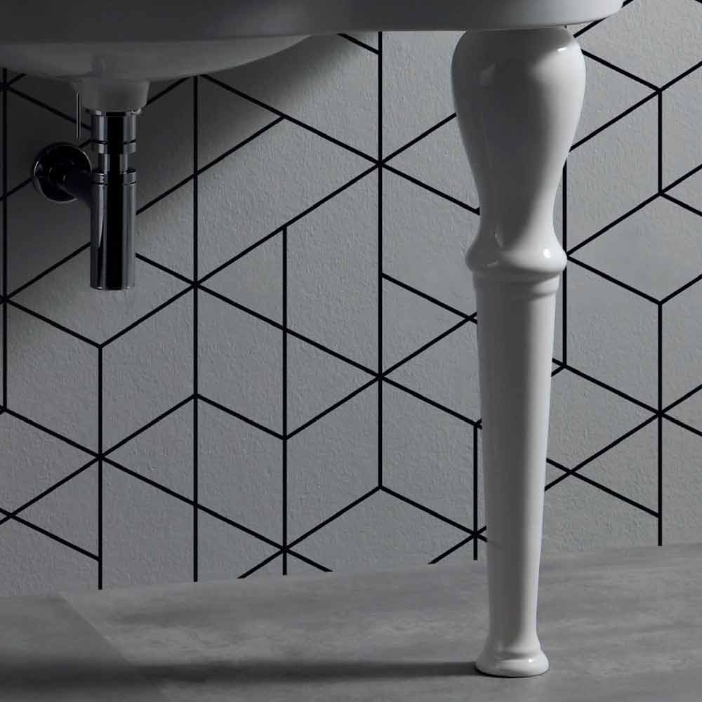 Diskbänken Avise är utrustad med ett centralt hål och det finns i väggmonterad version eller med ben . Det realiseras i glasglas , ett slags glaserat keramik kokt vid 1200 ° . Det är ett material som är resistent mot syra, värme, bulor och repor . Det är hygieniskt , e asy att rengöra och det bleknar inte med tiden.