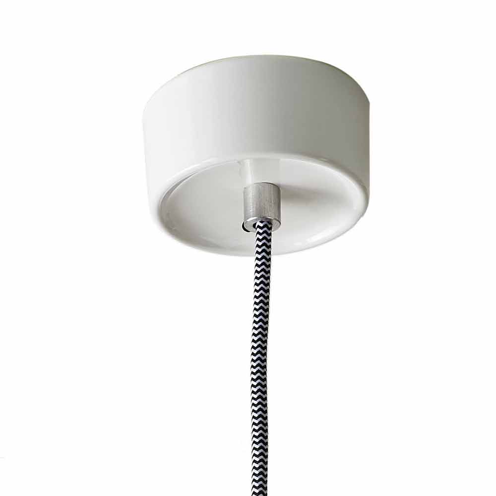 Tillverkad av apelsin och grått keramik med svartvitt tygkabel och aluminiumkabelklämma.