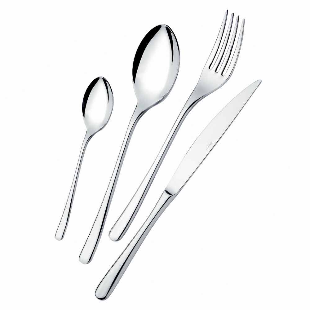 24 bestick av rostfritt stål i modern design med blank yta, tillverkad i Italien.