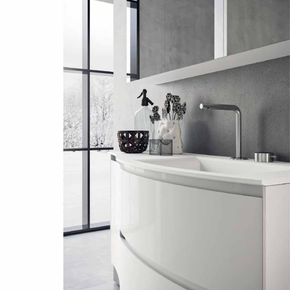 Denna kompositions särdrag ges av silhuetten av det inbyggda tvättstället som kännetecknas av två sidosidor som försiktigt faller ner mot bassängen.