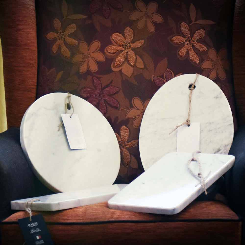 Oval skärbräda för modern design i vit Carrara-marmor Tillverkad i Italien.