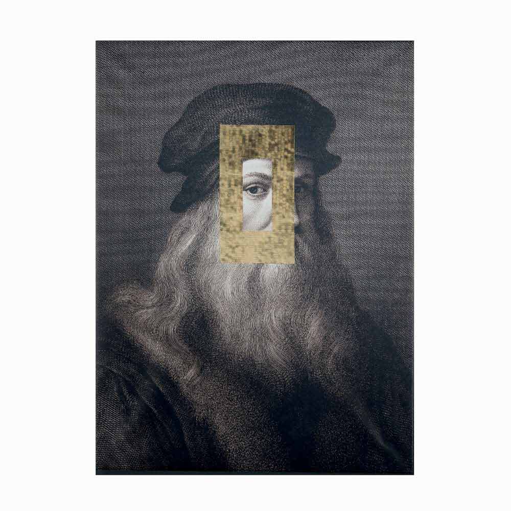 Modern väggmålning gjord i Italien i trä med tryckt duk som visar Leonardo da Vinci och berikad med en rektangulär dekor i guldblad . Designens elegans möter förfining av materialen för att ge liv åt ett originellt komplement som kan komplettera heminredningen på ett exklusivt sätt och med en stark modern personlighet . En extremt original inredningsidé som kan berika alla utrymmen i huset med personlighet och elegans, föra med sig livligheten i kreativa tryck och nya tekniker och visa sig vara en perfekt lösning för dem som letar efter en kreativ och excentrisk stil för väggarna i deras hem.