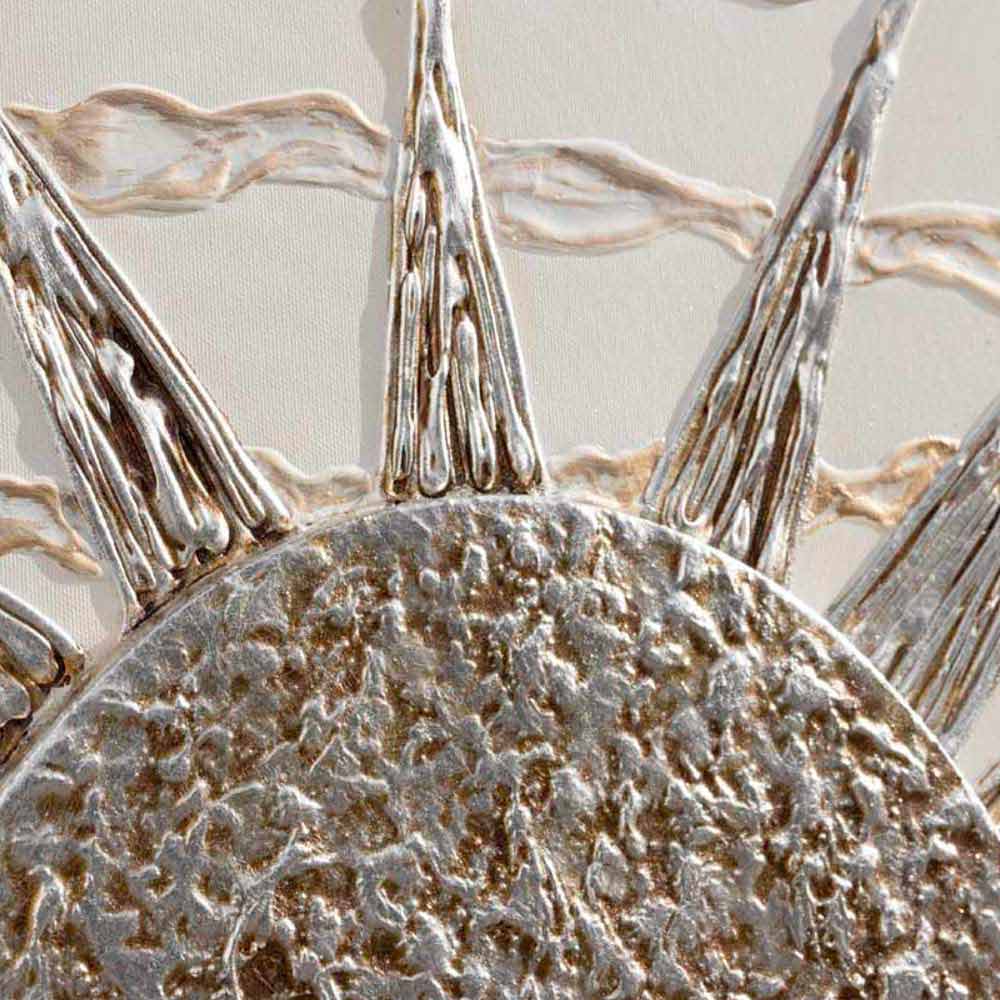 Dan består av konsthantverkare, består av en dubbelsidig dukstruktur, sammanfogad och dekorerad för hand med hartsdetaljer på material och ett centralt reliefelement.
