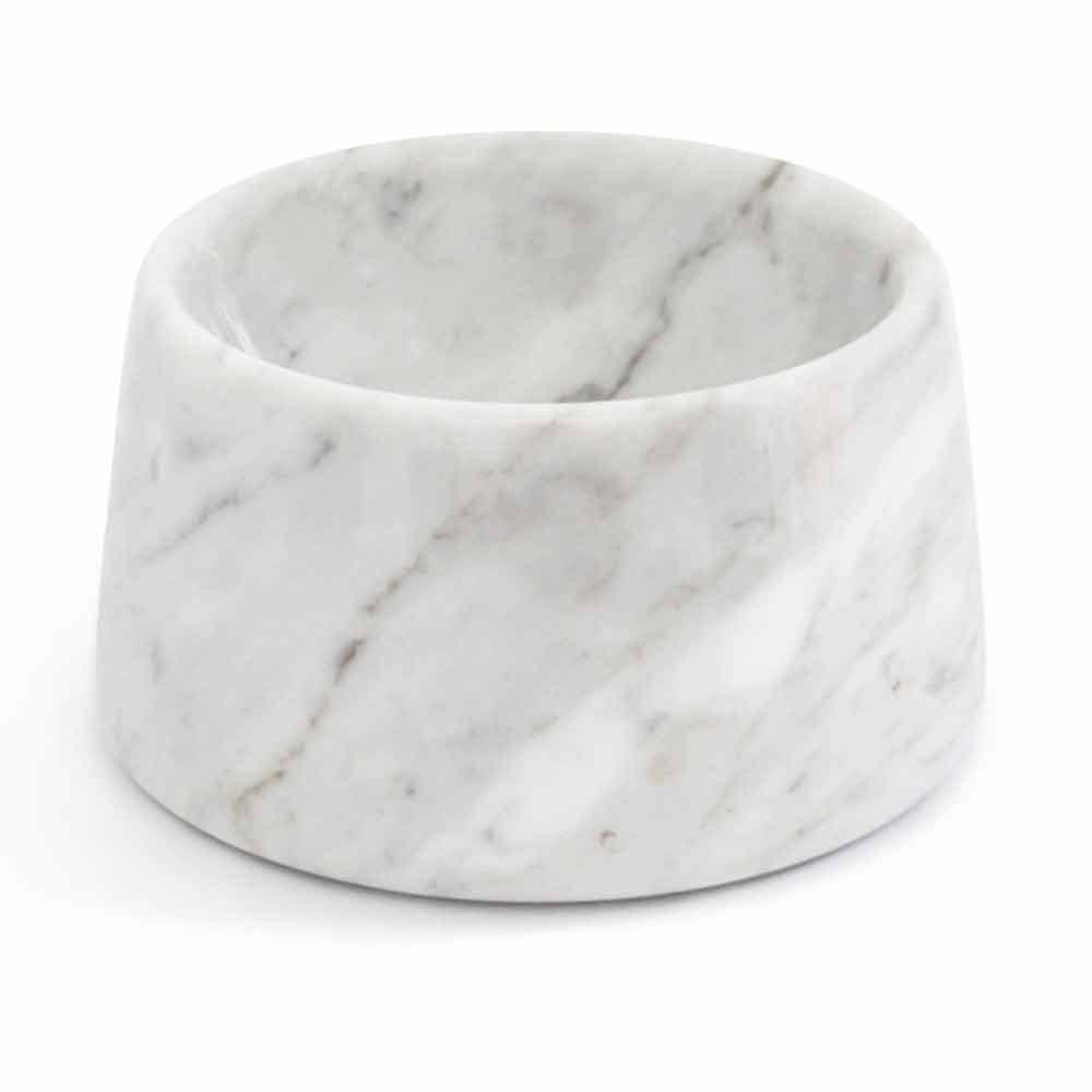 Underbar skål för hundar och katter som kännetecknas av den vita eller svarta marmor som den består av. Det är en unik bit eftersom varje block av marmor skiljer sig från de andra för vener och nyanser.