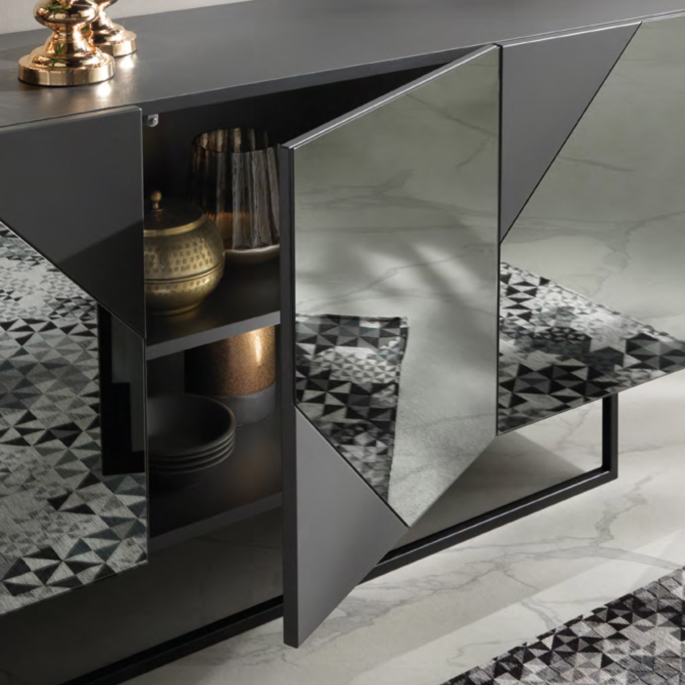 Modern skänk i melamin och mdf med glasinsatser Made in Italy.