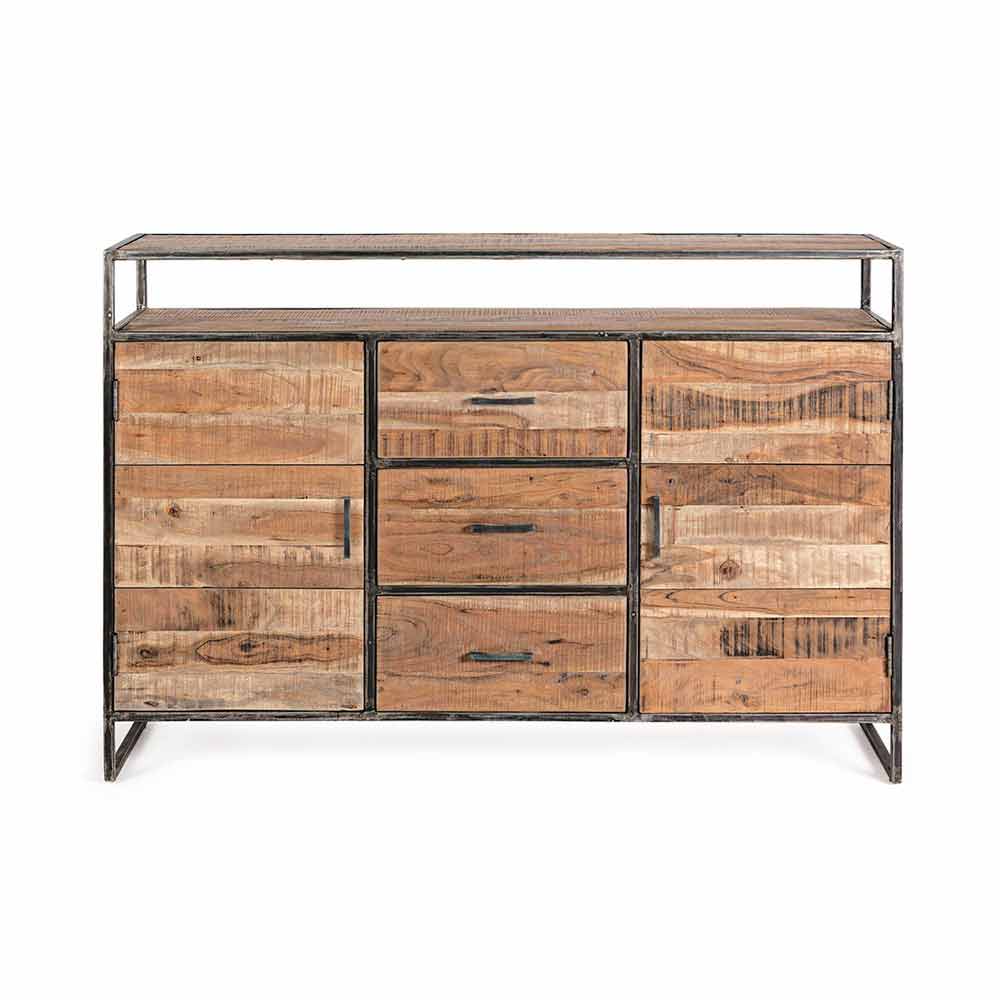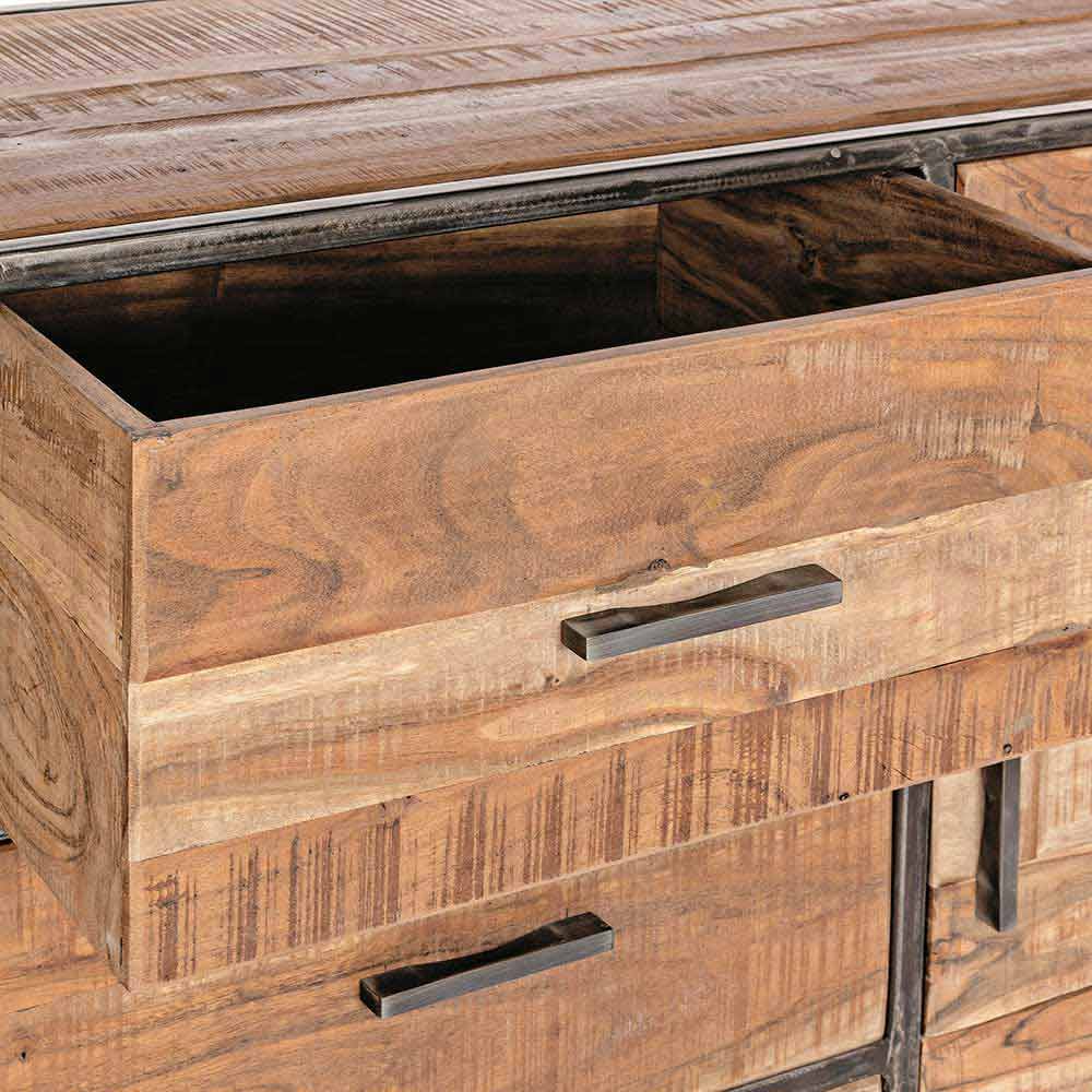 Skänk i industriell stil i akaciaträ och stål.