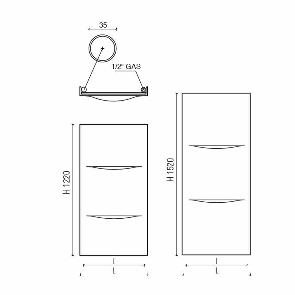 Finns i olika storlekar *:- H 1220 x L 535 x Inter. 460 x P 63 mm x Utgång w (At50 *) 475; Utbyte w (At30 *) 250; Utbyte w (At26 *) 209