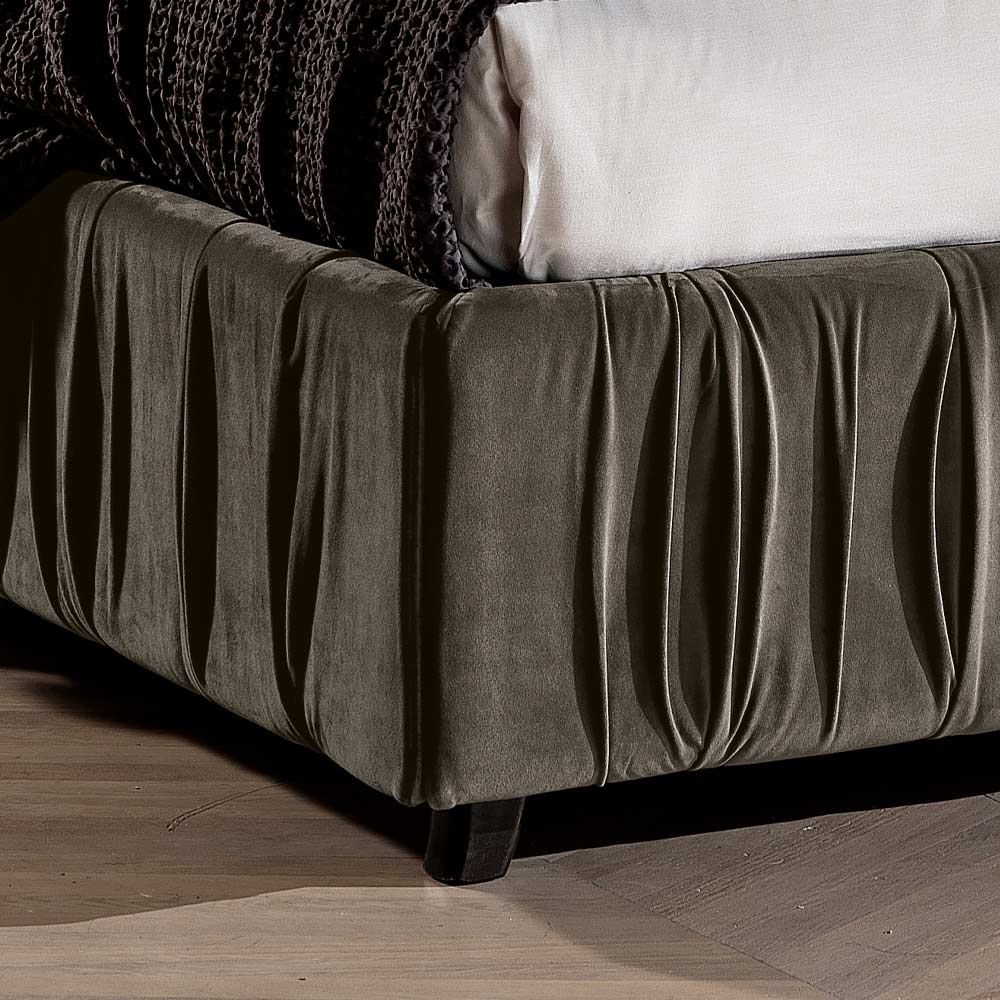 I vulkan- och elefantversionerna visar det moderna designkomplementet tygets skönhet med veck som också appliceras på sängramen.