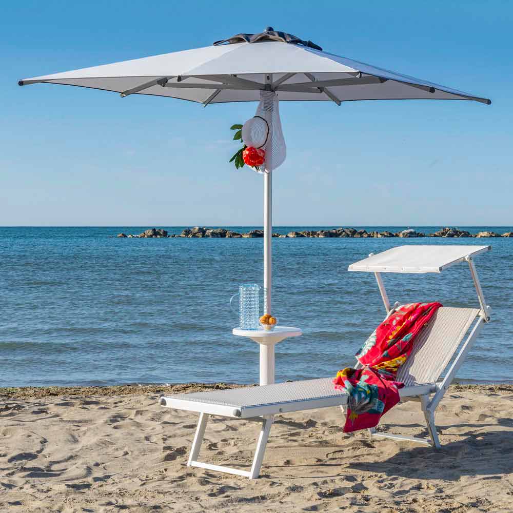 Ramen är helt byggd med 16 mikron anodiserat primäraluminium , medan alla muttrar och bultar är i rostfritt stål Aisi 316 . Presenningen och parasollen är i polyester täckt med PVC .