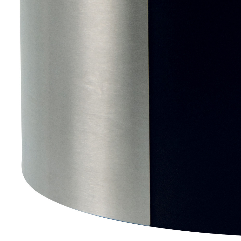 Denna stockhållare i metall är en perfekt blandning av modern funktionalitet och industriell stil. Dess cylindriska design förstärks av kombinationen av två ytbehandlingar: värmen från svart metall i kombination med stålets elegans, vilket skapar en visuell kontrast som fångar uppmärksamheten och förbättrar den omgivande miljön.