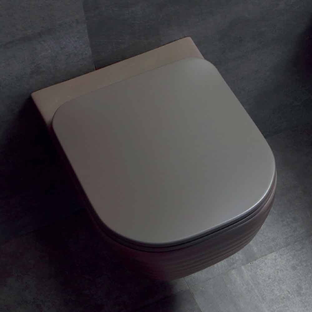 Den upphängda sanitären är särskilt bekväm när det gäller rengöring och väger inte ner området, vilket ger en känsla av lätthet och semplicity.