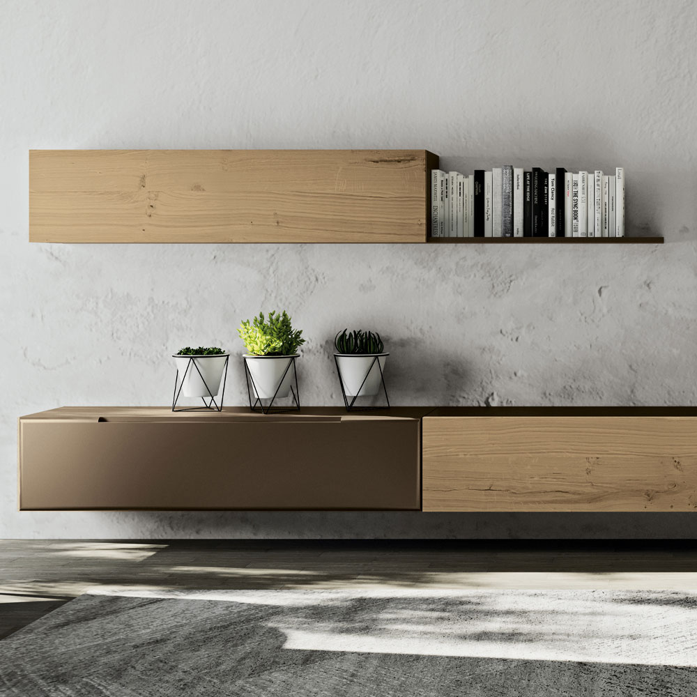 Modern väggkomposition i MDF och trä Tillverkad i Italien