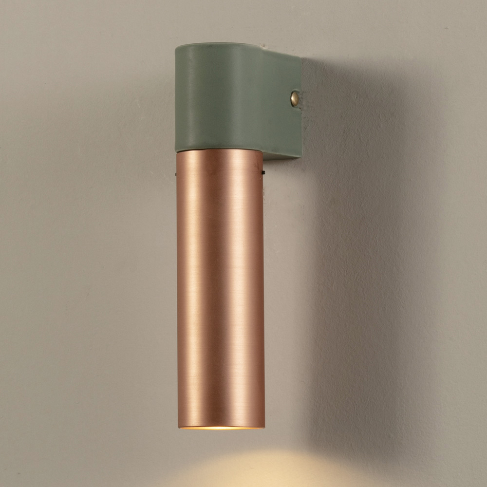 Vägglampa i keramik och borstad koppar handgjord i Italien.