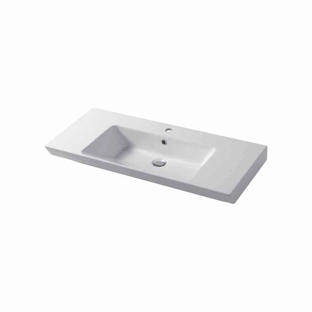 Bänken för bänkskiva och vägginsats kännetecknas av en modern och enkel design som kan anpassas till alla slags utrymmen och möbler. Den dekorativa aspekten är perfekt kombinerad med funktionaliteten som är en viktig funktion för badrummet. Användningen av glasartad porslin , speciell typ av glasad keramik tillagad vid 1200 ° , gör det möjligt att använda denna diskbänk utan att rädda för att förstöra ytan. Det är ett material som är resistent mot syra, värme, stötar och repor och det bleknar inte övertid. Den är också hygenisk och lätt att rengöra .